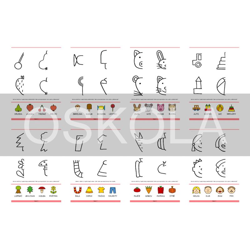 Tento sešit pomohá dětem při vlastní kresbě a upevňuje grafomotorické návyky. Navíc procvičuje slovní zásobu a podřazené/nadřazené pojmy.