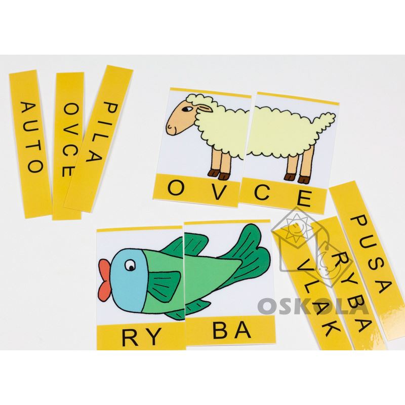 Tato skládačka učí děti číst první slova a skládat slova ze slabik. Podporuje čtení analyticko-syntetickou metodou neboli čtení po slabikách.