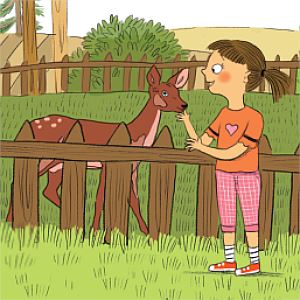 Je léto a Ema je moc ráda, že zase uvidí babičku a dědu. Také se těší na zvířátka – kočky, králíky, telátka, slepice… Ale těch se Ema trochu bojí, protože ji jedna klovla do prstu. Na zahrádce pomůže zalévat zeleninu a u hajného se dozví, proč má v ohrádce malého kolouška bez mámy. Bude si ho moci pohladit? V lese našla „velkou borůvku“, ale sníst ji nesmí. Proč? A také musí zjistit, kde má ten malý svítící brouček lucerničku.
