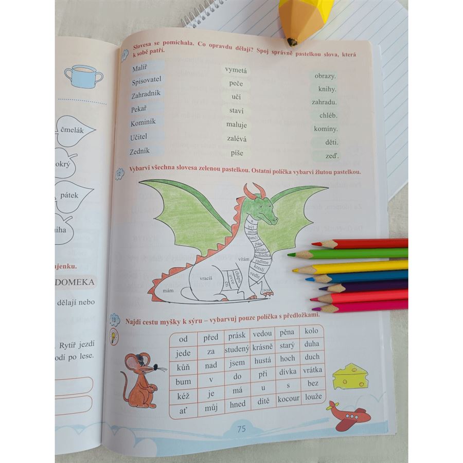 Pracovní sešit obsahuje celkem 96 moderně zpracovaných celobarevných stran, které podporují motivaci a kreativitu žáků. Je sestaven odborným týmem pedagogů a lektorů na základě zkušeností s výukou na 1. stupni. Pracovní sešit je součástí ucelené koncepce pro výuku českého jazyka na 1. stupni základních škol. V rámci této koncepce si učitelé mohou doplnit tradiční učebnice a pracovní sešity o další pomůcky, které komplet dotvářejí.