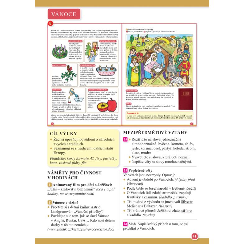 Metodická příručka je navržena jako námět, který si můžete operativně a kreativně dotvořit podle požadavků a momentální situace (jaké se Vám sešly děti, jaká jsou místní specifika na Vaší škole), aby se rozvíjela především kreativita a týmová spolupráce žáků. Metodika obsahuje celkem 18 stránek s dalšími úlohami, které učitel může využít podle potřeby v rámci výuky. Převážně jde o rozšiřující učivo pro nadané žáky. U každé kapitoly najdete příslušnou zmenšenou kopii stránky z pracovní učebnice s řešením úloh. Nechybí ani cíle výuky a u opakovacích stran očekávané výstupy.