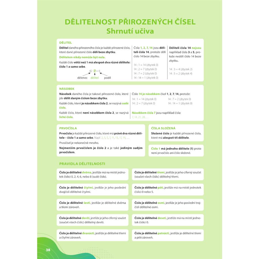Shrnutí teorie: Každá kapitola začíná přehledem základních pojmů a postupů, které žáci potřebují pro zvládnutí daného tématu.