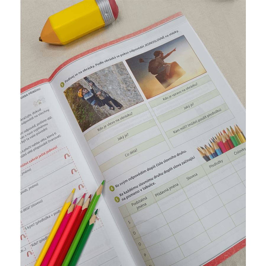 Pracovní sešit se zaměřuje na komunikační a slohovou výchovu