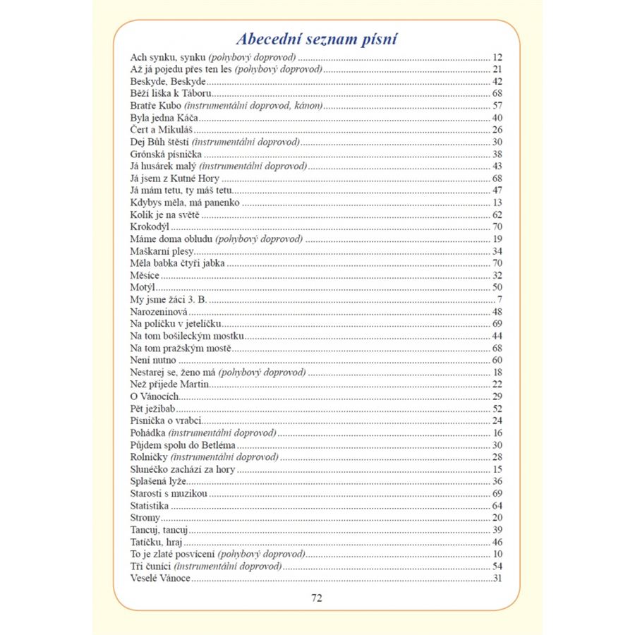 V učebnici najdete i dechová, hlasová a artikulační cvičení, která by se měla stát nezbytnou součástí každé hodiny hudební výchovy. Pro větší přehlednost je učivo rozděleno do jednotlivých měsíců a dále do kapitol. Ty jsou často uvedeny motivačním příběhem, který promlouvá prostřednictvím průvodce učebnicí – slavíka Otíka.