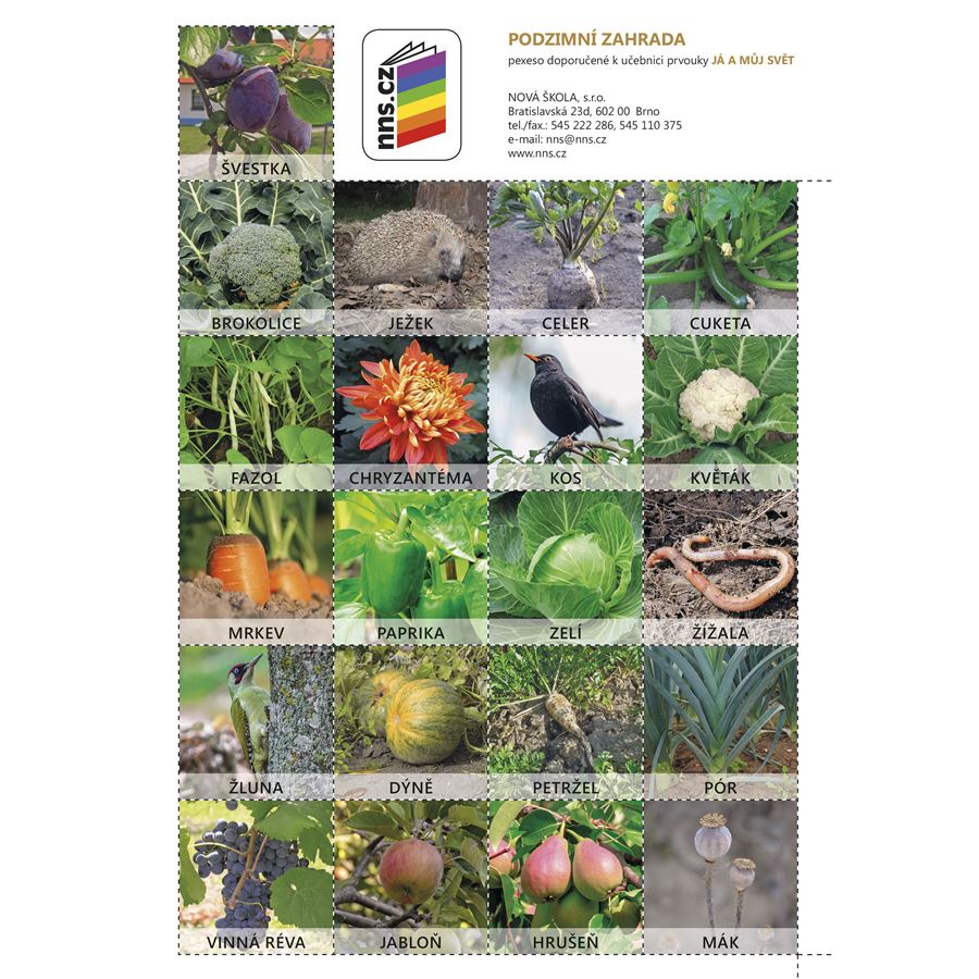 Pexesa jsou koncipována k obrazovým dvoustranám v učebnici, kde mohou žáci pozorovat živé organizmy v jejich přirozeném životním prostředí během čtyř ročních období. (Podzimní rybník, Zimní zahrada a Jarní les jsou jednostranně.) Pexesa zachycují tyto živé organizmy na fotografiích. Žáci tak mohou rostliny, živočichy a houby spatřit i zblízka a v jejich skutečné podobě. Při hře se je snadno naučí poznávat.
