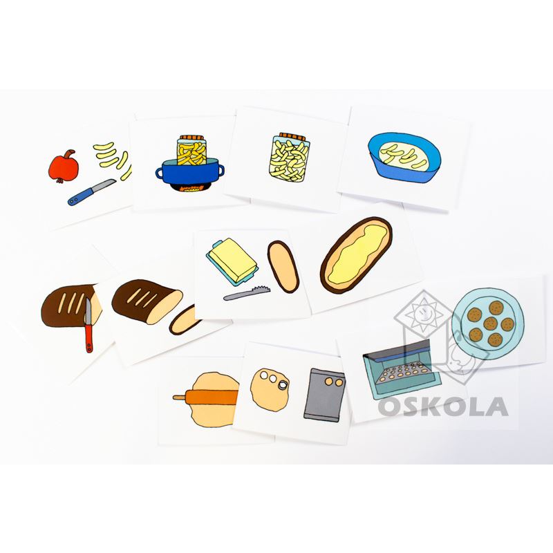 Soubor dějových obrázků obsahuje 5 sad po čtyřech kartičkách.
