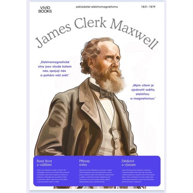 Maxwellův přínos spočívá ve schopnosti propojit zdánlivě nesouvisející jevy a vytvořit z nich elegantní teoretický rámec. Tento plakát oslavuje jeho roli jako jednoho z nejvýznamnějších vědců 19. století, jehož odkaz je stále živý v našem moderním světě technologií a vědy.