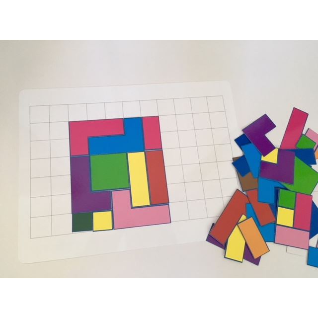 Jako podkladovou plochu doporučujeme "mazací tabulku - mříž", jejíž jedna strana má rozměr mříže o velikosti 2,5 x 2,5 cm. Na tuto tabulku je možné si fixou vyznačit plochu, jak velkou část podlahy budou děti v úloze pokrývat.