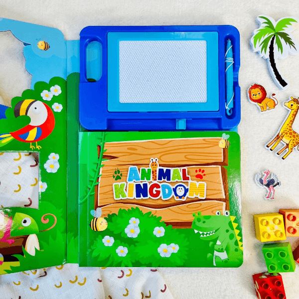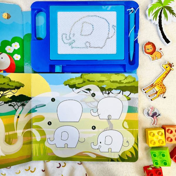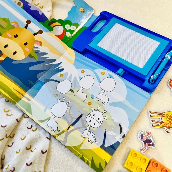 Kniha je z magnetické tabulky s perem a obrázkovým návodem s přesným postupem, jak kreslit zvířátka. Pero dobře padne do dětské rukojeti a k tabulce je připevněno provázkem.