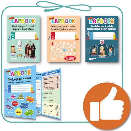 Lapbook je naše velká novinka. Zvláštní 3D kniha, která vede žáky 1. stupně ZŠ nejen k tvořivosti, ale i k procvičování. Nenásilnou formou si zopakují učivo daného ročníku. Je vždy monotematicky zaměřená na jeden předmět a na konkrétní část učiva v tomto předmětu.