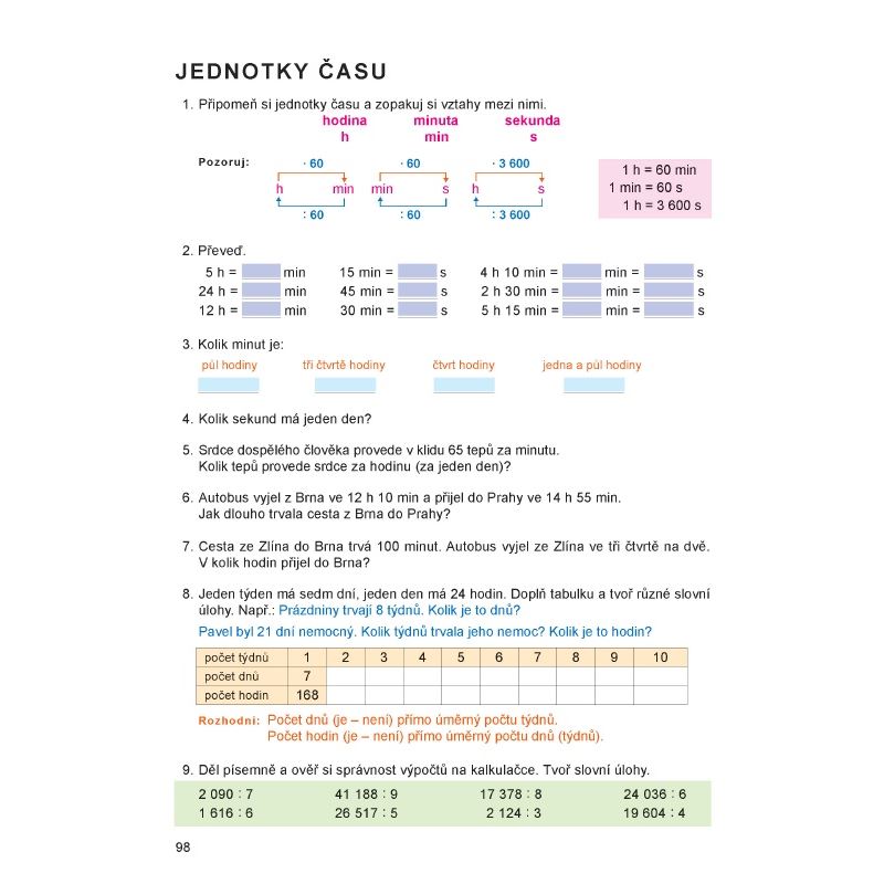 při práci s jednodílnou i trojdílnou učebnicí, odkazy na strany obou učebnic