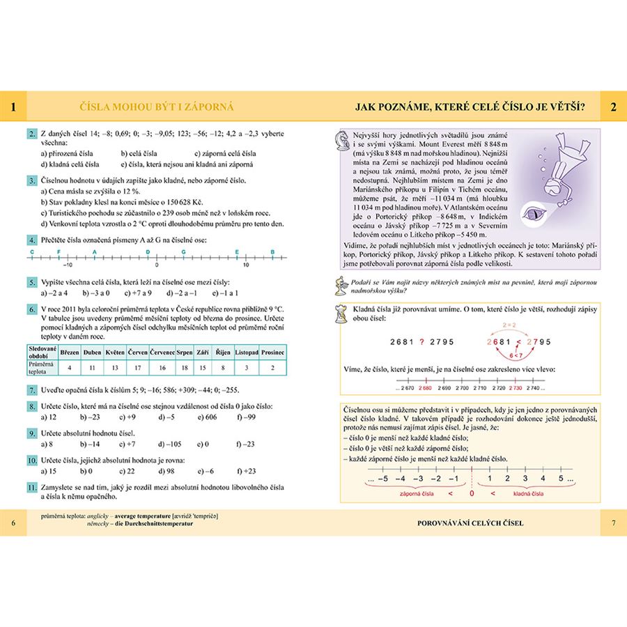 Učivo matematiky celého 2. stupně není děleno klasicky do jednotlivých ročníků, ale je rozděleno tematicky do 16 učebnic. Náplň každé učebnice přesně vychází z RVP ZV. Rozdělení látky do samostatných tematických celků vychází vstříc potřebám škol – je tak možné řadit látku individuálně podle ŠVP, který má škola zpracován. Vtomto navrženém pořadí je počítáno se čtyřmi tématy pro každý ročník. Doporučeno pro 6. ročník: Desetinná čísla –  musí předcházet učebnici „Základy geometrie“ a „Kladná a záporná čísla“; Kladná a záporná čísla – musí předcházet učebnici „Zlomky, poměr“; Dělitelnost; Základy geometrie –  musí předcházet učebnici „Shodnost geometrických útvarů, souměrnosti“.