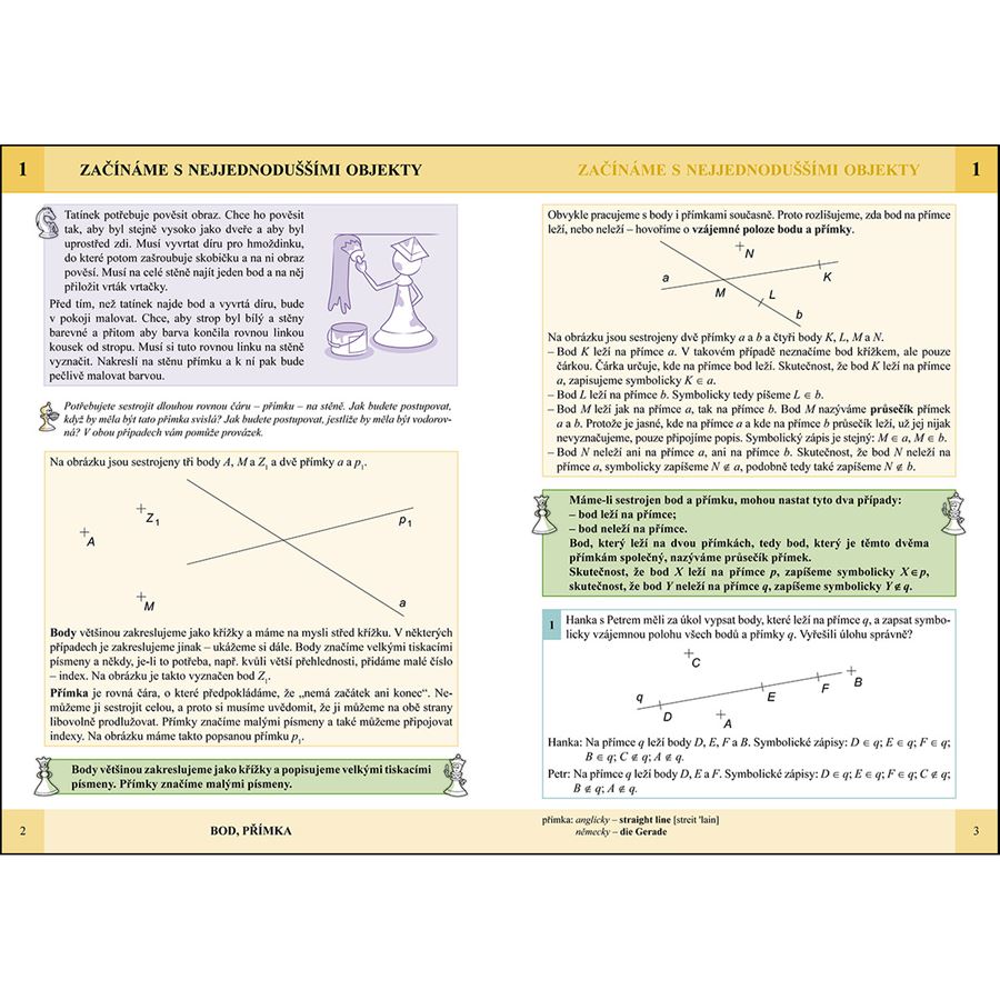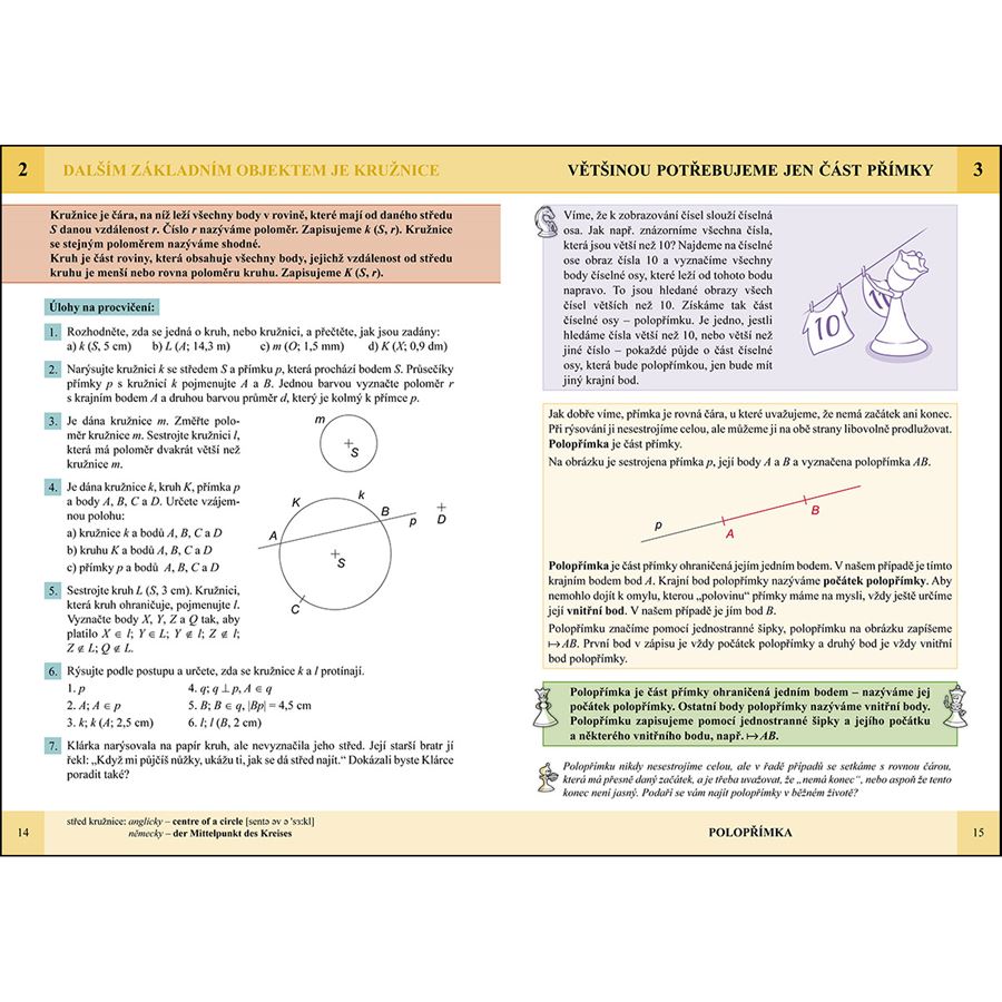 Učivo matematiky celého 2. stupně není děleno klasicky do jednotlivých ročníků, ale je rozděleno tematicky do 16 učebnic. Náplň každé učebnice přesně vychází z RVP ZV. Rozdělení látky do samostatných tematických celků vychází vstříc potřebám škol – je tak možné řadit látku individuálně podle ŠVP, který má škola zpracován. Vtomto navrženém pořadí je počítáno se čtyřmi tématy pro každý ročník. Doporučeno pro 6. ročník: Desetinná čísla – musí předcházet učebnici „Základy geometrie“ a „Kladná a záporná čísla“; Kladná a záporná čísla – musí předcházet učebnici „Zlomky, poměr“; Dělitelnost; Základy geometrie – musí předcházet učebnici „Shodnost geometrických útvarů, souměrnosti“.