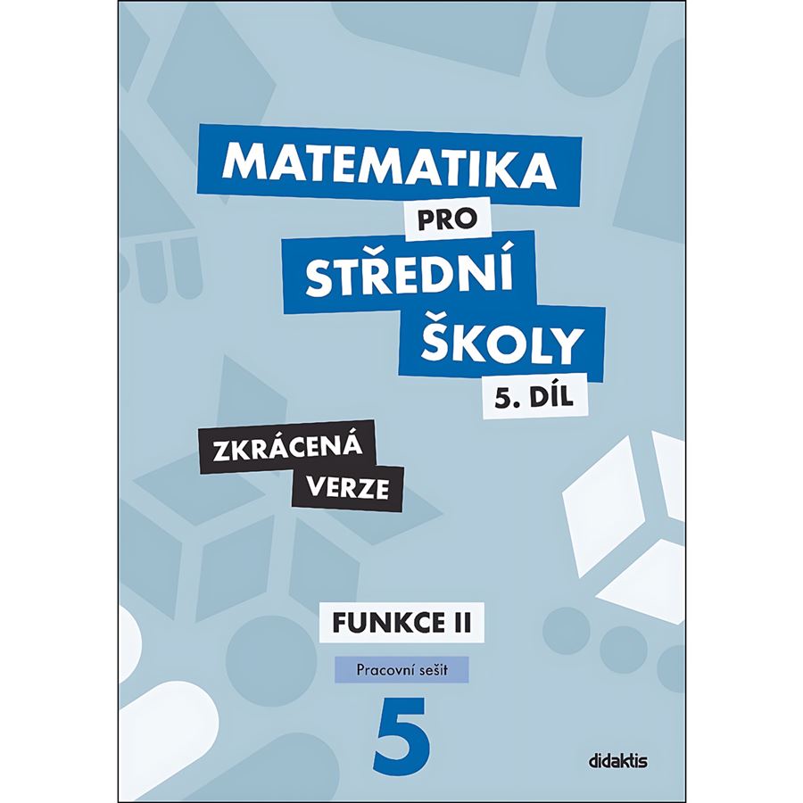 Pátý díl pracovního sešitu ve zkrácené verzi navazuje na díl čtvrtý a věnuje se dalším typům funkcí. Je rozdělen do čtyř tematických celků, v nichž se žáci postupně seznámí s funkcemi exponenciálními, logaritmickými a goniometrickými. V rámci jednotlivých celků je zařazeno i řešení exponenciálních, logaritmických a goniometrických rovnic a nerovnic, oproti původnímu pracovnímu sešitu ale v menším množství a s důrazem na úlohy s nižší obtížností. Poslední celek se zaměřuje na využití goniometrických funkcí při řešení obecného trojúhelníku.
