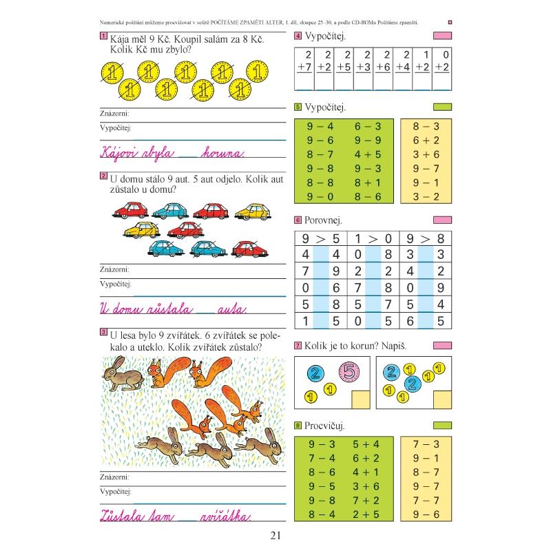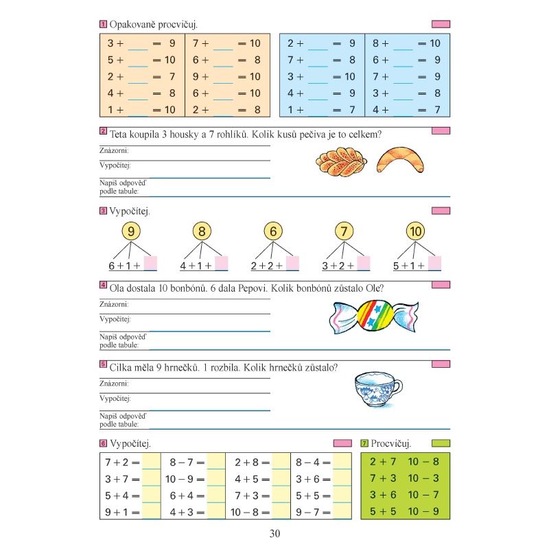 sčítání a odčítání čísel v oboru do 10 a jednoduché slovní úlohy.