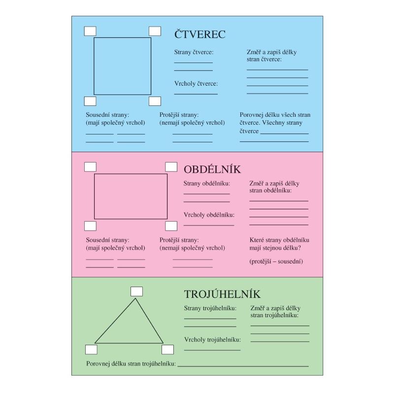 Geometrie: měření a rýsování úseček dané délky, vrcholy stran čtverce,