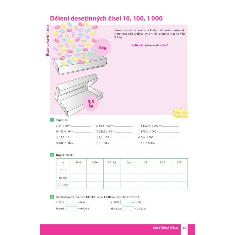 Nová koncepce pracovních sešitů. Tato řada se liší od pracovních sešitů Hravá matematika především redukcí hravých úloh a větším důrazem na počet příkladů k procvičení. Grafické zpracování je účelné. Každá kapitola je rozdělena na několik podkapitol, které začínají aktivizační úlohou. Cílem těchto úloh je ukázat žákům, kde se mohou s probíranou problematikou setkat v běžném životě. Na tvorbě pracovního sešitu se podílel široký kolektiv učitelů s bohatými teoretickými znalostmi i praktickými zkušenostmi z vyučování matematiky. Je součástí ucelené řady učebnic, pracovních sešitů a početníků - Hravá matematika a Matematika V Pohodě pro 2. stupeň ZŠ a víceletá gymnázia. Na začátku každé kapitoly se nachází několik prázdných stran na poznámky žáků. Čísla všech příkladů jsou v barevných rámečcích. Zelené rámečky 1 označují nejjednodušší příklady, modré rámečky 3 značí střední obtížnost a červená barva 5 je přidělena náročným úlohám. Každá kapitola je zakončena testem (test vždy obsahuje variantu A a variantu B). Jednotlivé testy budou žáky postupně připravovat na ostré varianty testů, které je čekají u přijímacích zkoušek na střední školu. Na konci každé podkapitoly (vyjma té první) se na kraji stránky nachází rámeček s opakovacími příklady z předešlých podkapitol.