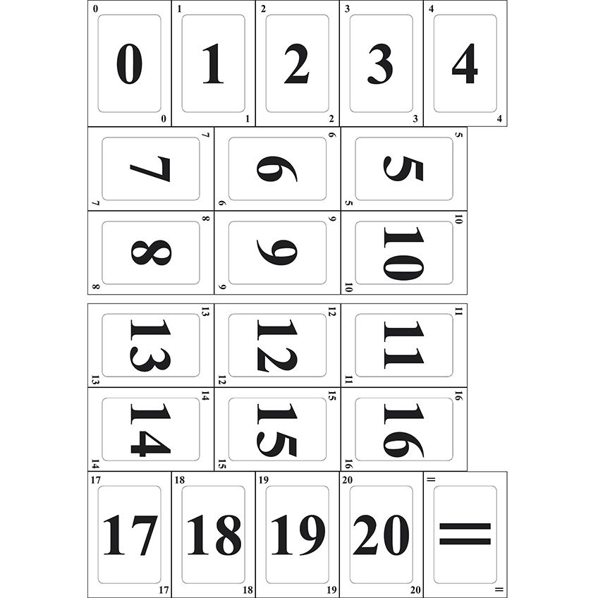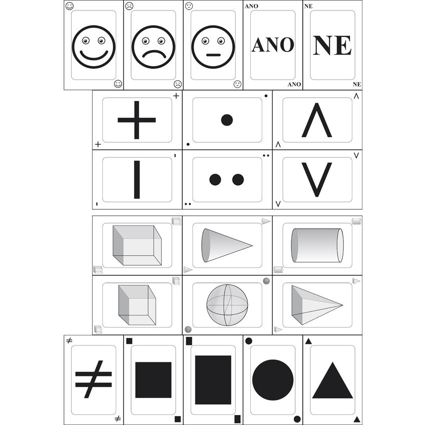 Sada kartiček obsahuje 44 karet: čísla 0 až 20, geometrickými tvary a matematické symboly. Na přední straně karet jsou barevné obrázky s Matýskem.