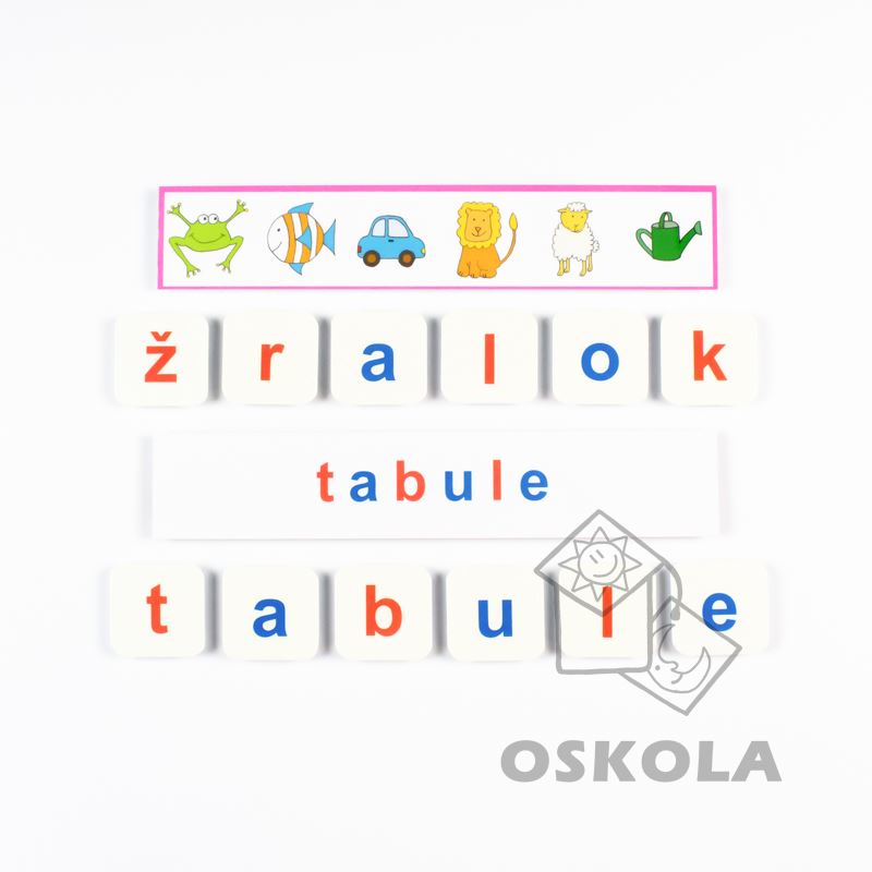 Vzdělávací aktivita je vhodná pro předškoláky i první trojročí. Samohlásky jsou červené a souhlásky modré.