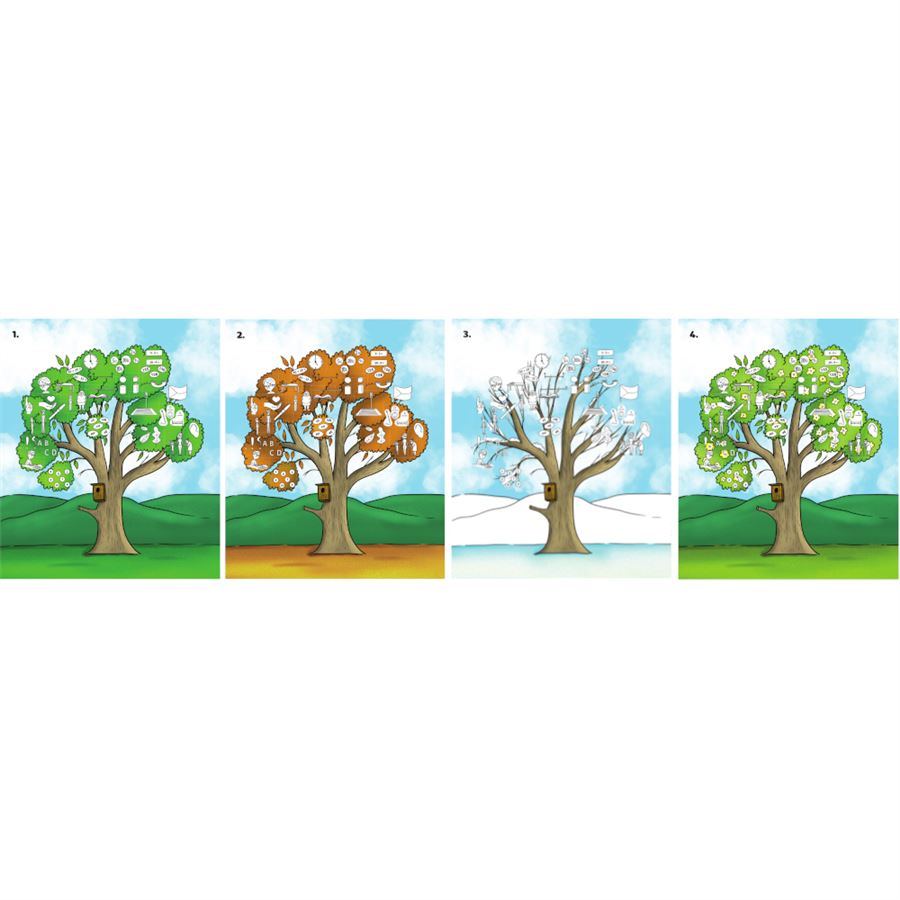 Součásti archu jsou volné listy stromů čtyř ročních období, které slouží k průběžnému hodnocení naplněných cílů. Žák si postupně, jak si osvojuje stanovené cíle, vybarvuje ikonky související s daným cílem.