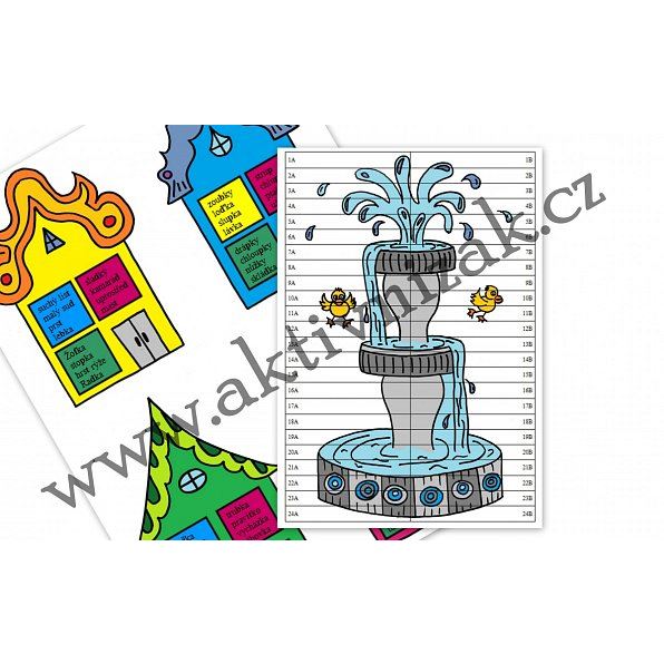 Aktivita je zaměřená na procvičování psaní párových souhlásek uprostřed i na konci slov na základě kooperativního vyučování. Činnost je určená pro tým o 4 žácích. Každý žák obdrží domeček, na kterém jsou zapsaná slova k procvičování. Pro jednu skupinu je připraveno 48 slov včetně správného řešení. Za úspěšná řešení žáci ve skupině získávají rozstříhané části obrázku. Na závěr si celý tým společně složí obrázek kašny, aby vzniklo opravdové náměstíčko.