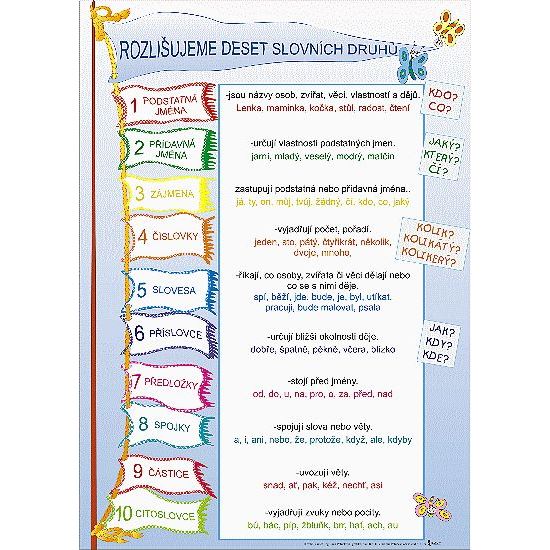 Odlišná výslovnost, 10 slovních druhů - karta pro 2. ročník (A4)