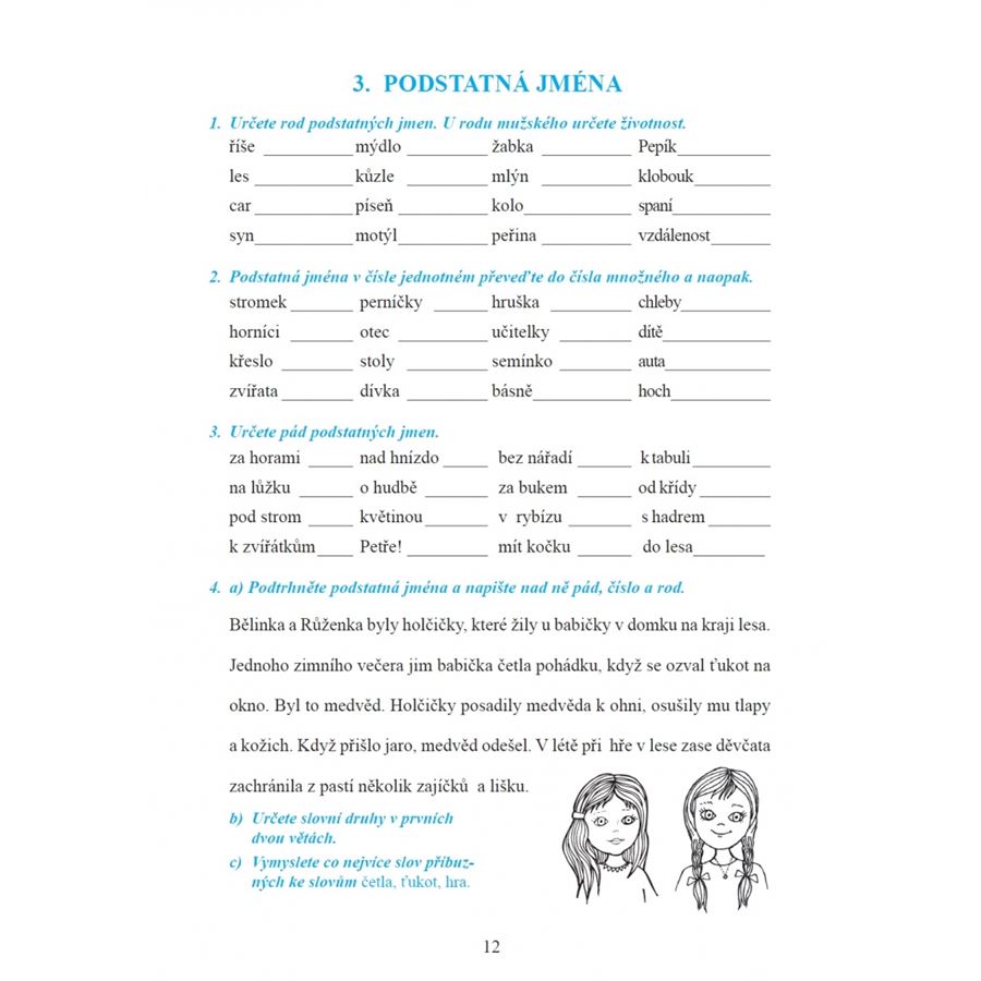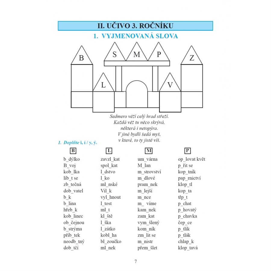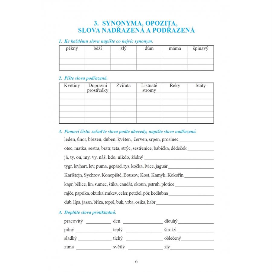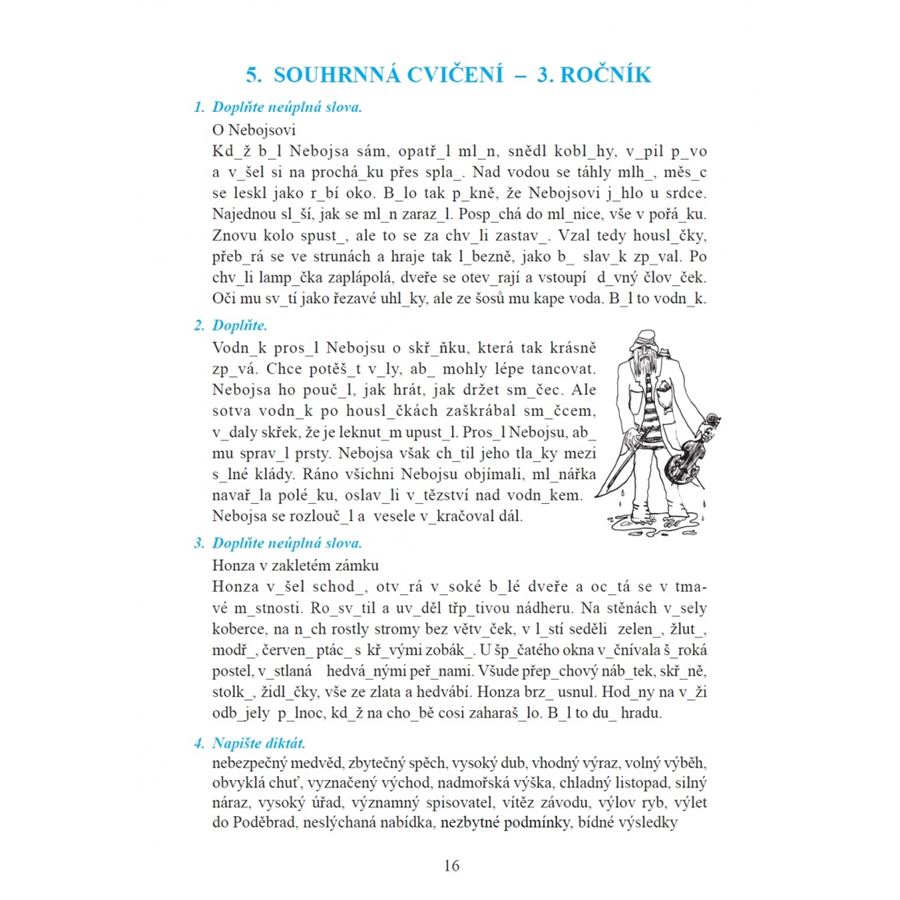 Mluvnická cvičení k upevnění a zopakování zejména pravopisného učiva jsou rozdělena chronologicky do 3 kapitol - učivo 3., 4. a 5. ročníku. Zastoupena jsou cvičení doplňovací, obměňovací, diktáty, tajenky, čtyřsměrky. Rozsah 88 stran, doplněno klíčem s řešením.