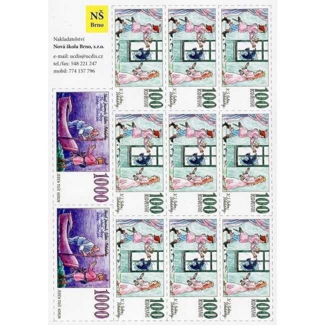 Pomůcka do matematiky (s pohádkovou tematikou). Jedná se o dvojstranu formátu A4.
