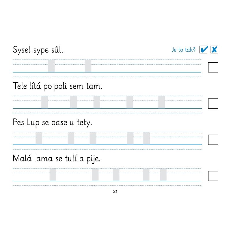 a jejich užití ve slabikách, slovech a větách. Obsahuje také nácvik číslic,