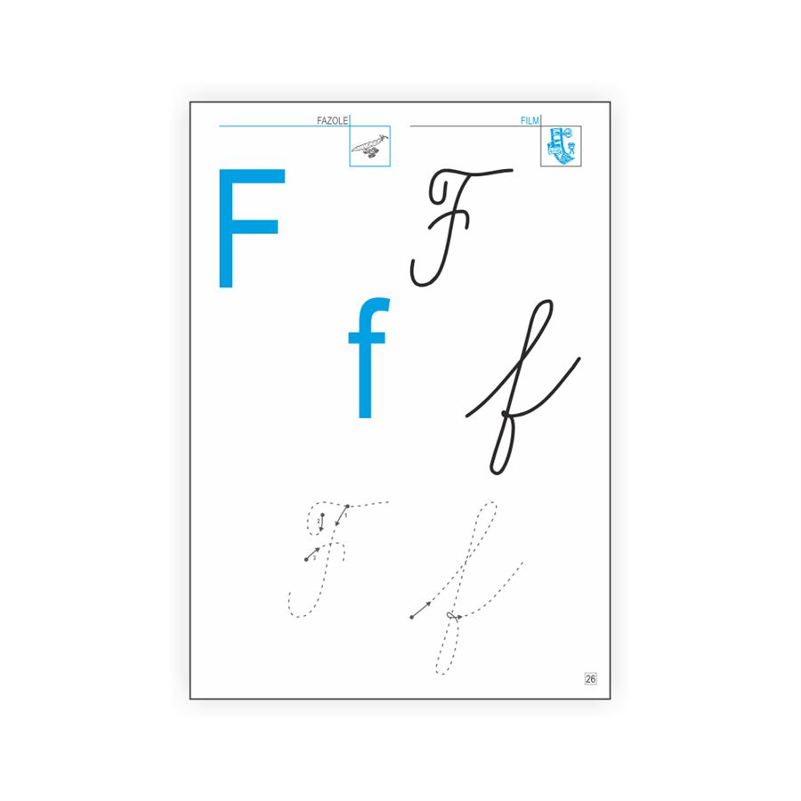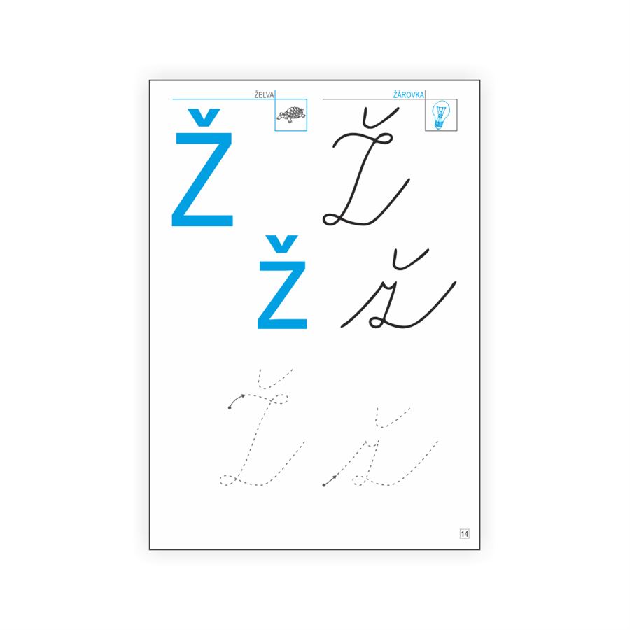 Písanka obsahuje vždy jednu stranu s novým písmenem pro opakované obtahování a nácvik směru psaní.