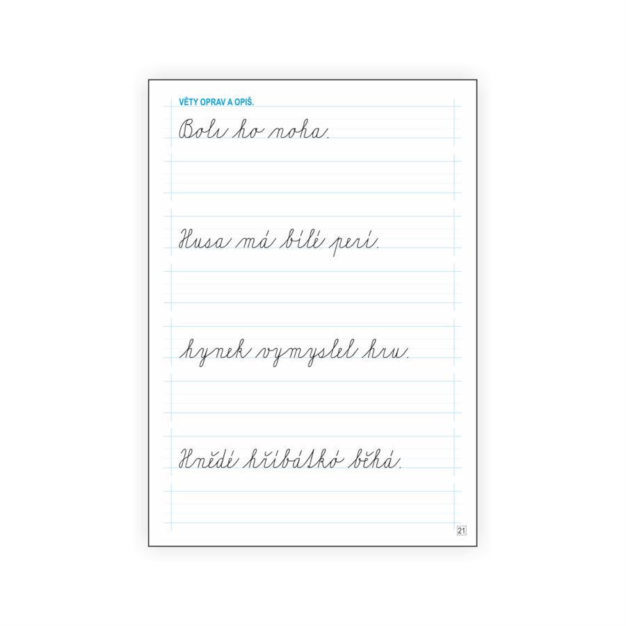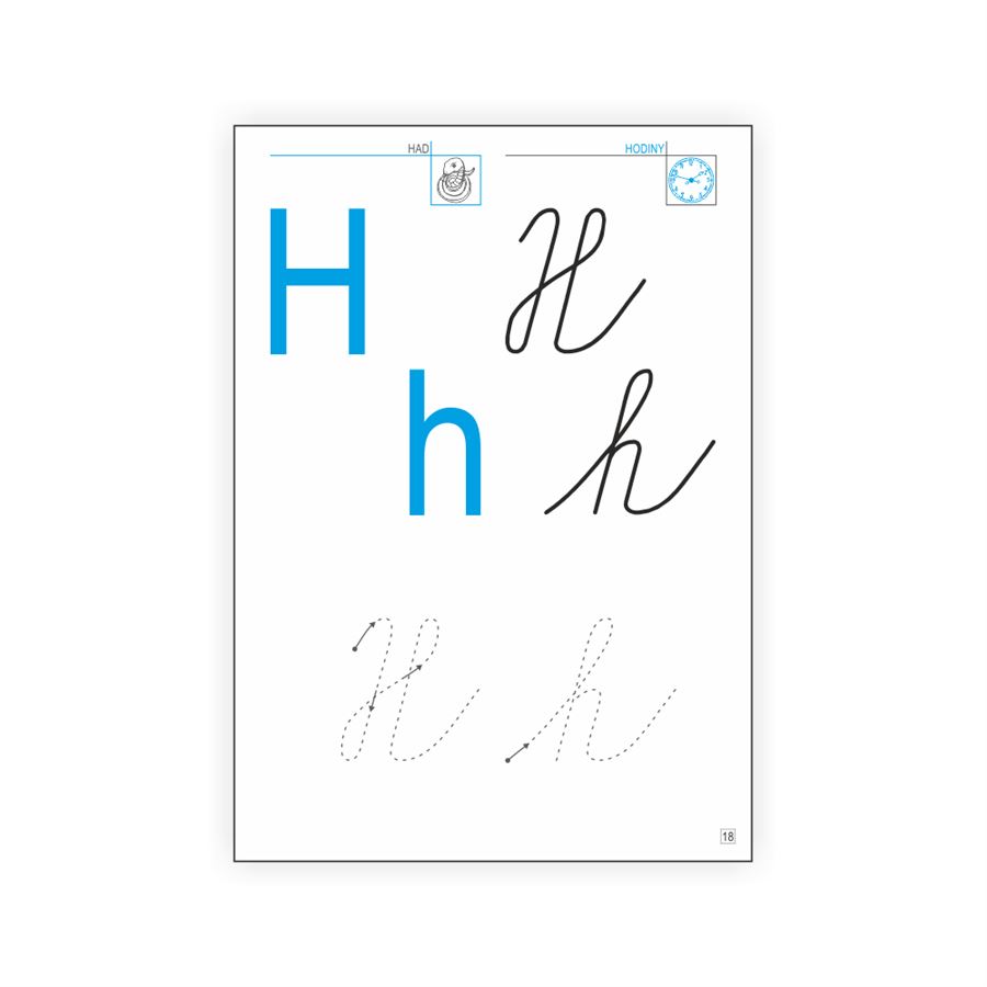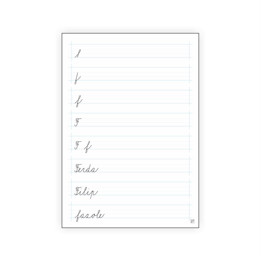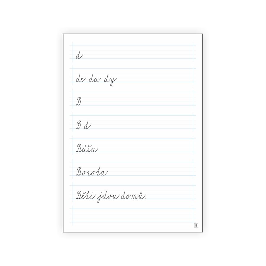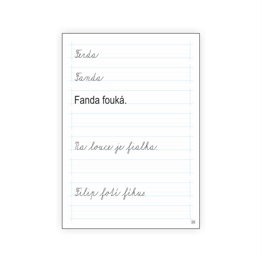 Stránky jsou členěny na 8 řádků s pomocnými linkami. Mezi řádky jsou též mezery, které umožní lepší orientaci dítěte na stránce.