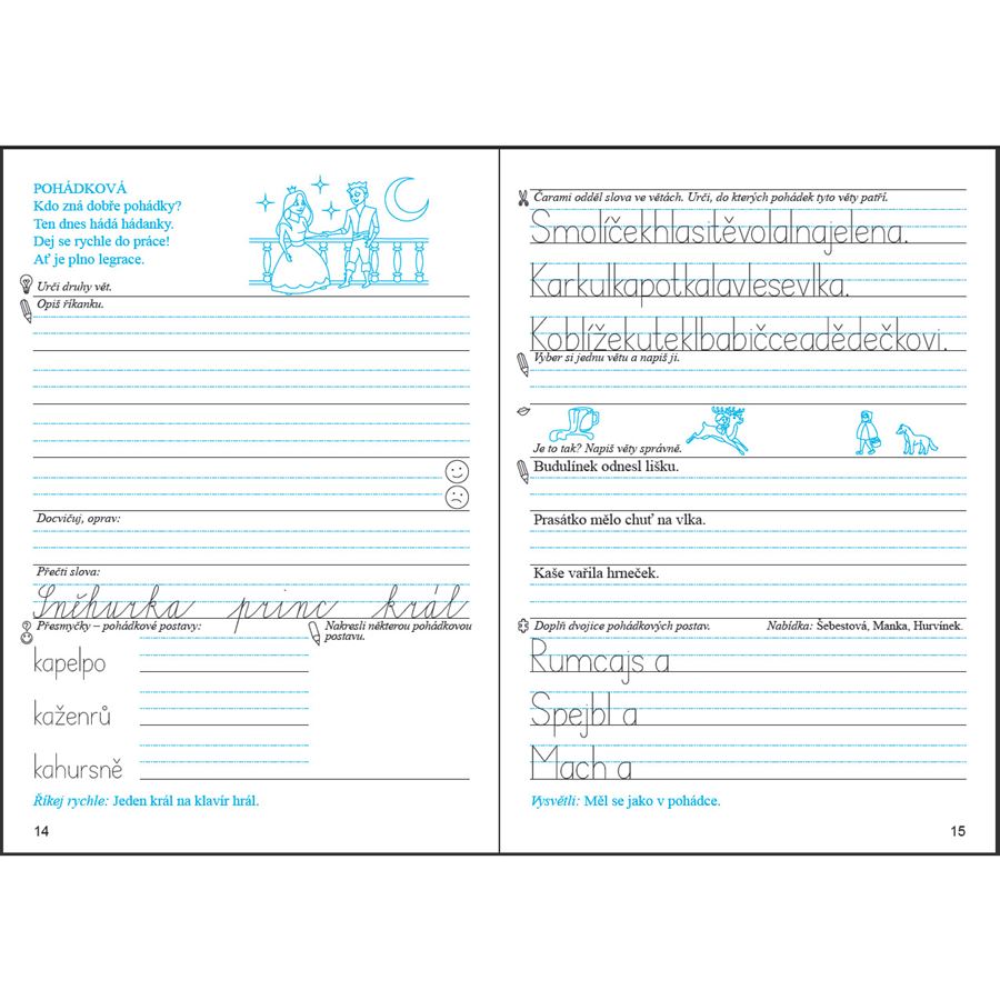 V této písance se procvičuje psaní slov, vět a nacvičuje se přepis krátkých textů nevázaným písmem. Jednotlivé úkoly podporují zvýšenou pozornost žáků při psaní a rozvíjejí jejich uvažování. Napomáhají také k uvědomování si toho, co žáci píší, a zlepšují porozumění čtenému a psanému textu. Písanka je doplněna různými úkoly, rébusy a hádankami. Na každé dvoustraně je jednak jazykolam k procvičení výslovnosti, jednak přirovnání, které slouží k rozvoji schopností porozumět textu, vyjadřování žáků a dalšího širšího chápání jazyka. Písanka obsahuje prvky sebehodnocení a prvky práce s chybou. Mezipředmětově je propojena s učivem českého jazyka a prvouky. Žáci v písance procvičují čtení písmen, slov a krátkých vět psaných vázaným písmem. Cílem ovšem není, aby žáci tyto tvary psali. Utvářejí si tak postupně dovednost číst text napsaný vázaným písmem.