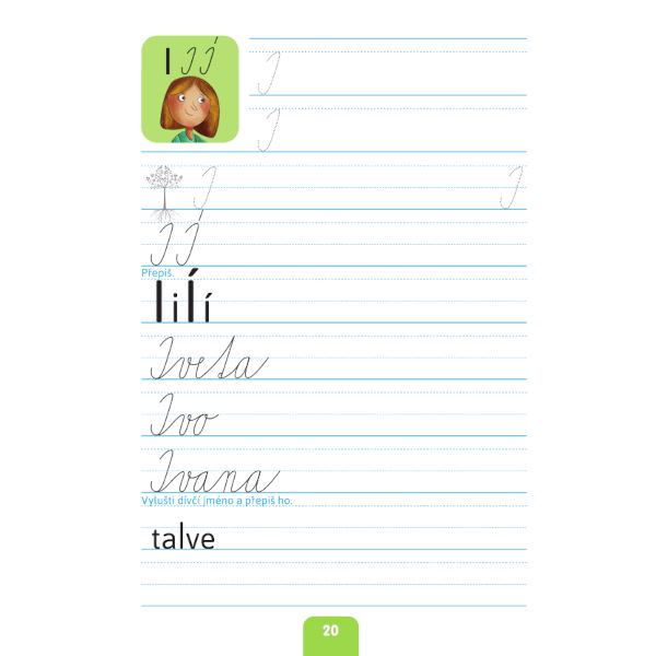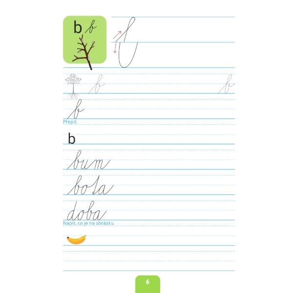 Žáci se v ní učí psát malá i některá velká písmena. Postupně začínají psát jednoduchá slova a nakonec i celé věty.