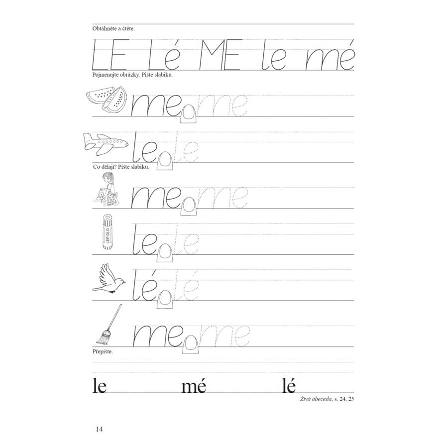 Písanky k nácviku písmen a psaní nevázaným písmem. K usnadnění psaní slouží pomocné linky. První tři písanky korespondují se stranami z Živé abecedy a Slabikáře. Čtvrtá písanka přináší hravá a tvořivá cvičení k nácviku nevázaného písma.