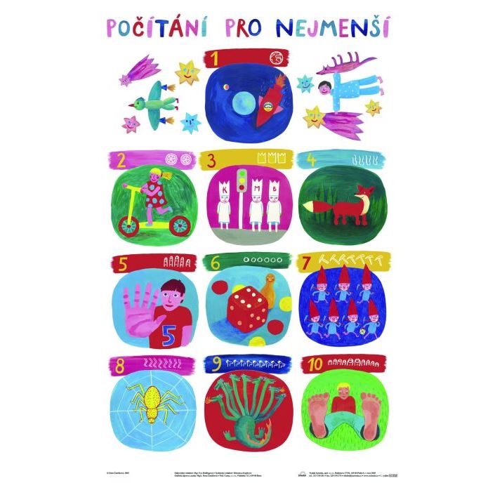 Nástěnná tabule s bohatou ilustrací jednotlivých číslic pro výuku číslic pro nejmenší.