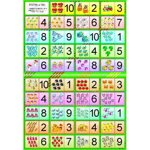Hra je obdobou domina - kartičky se po vystříhání přikládají tak, aby kartička s určitým počtem
