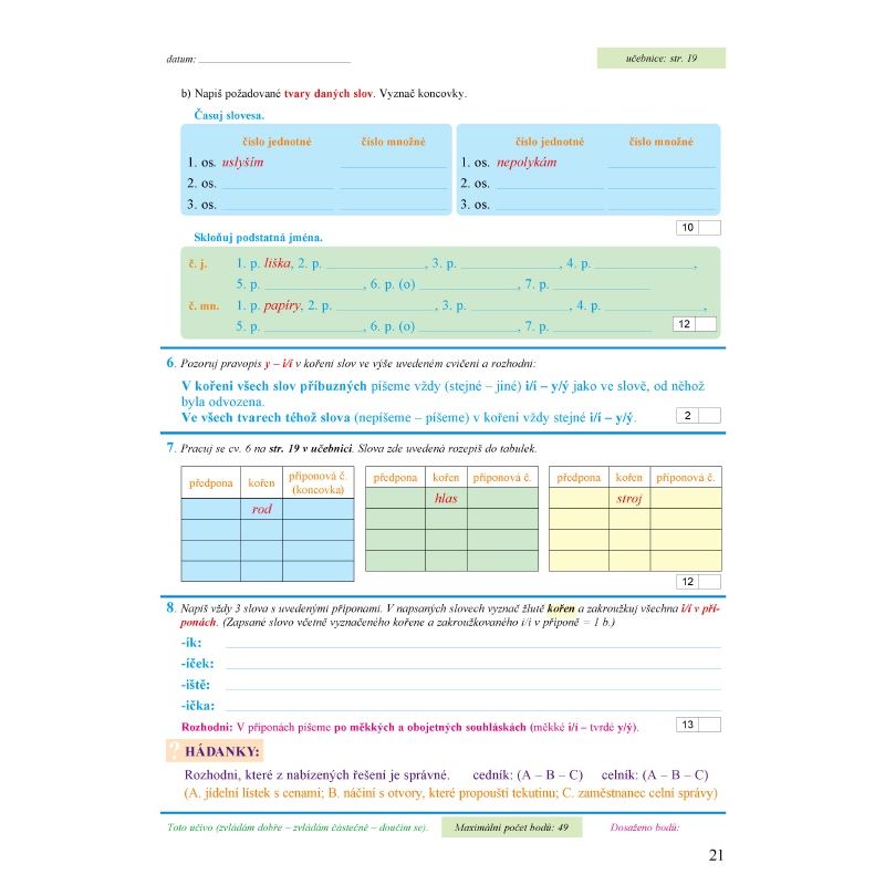 Ilustrace obálky Adolf Born. Metodické postupy v tomto dvojdílném pracovním sešitě vyhovují moderním trendům činné školy. Úkoly jsou sestaveny tak, aby se žák zdokonaloval ve čtení s porozuměním, aby ho podněcovaly k přemýšlení, ke zformulování a zapsání řešení, ke zdůvodňování zvoleného postupu; aby se prostřednictvím aplikačních cvičení učil racionálně myslet. Součástí je kartonová příloha.