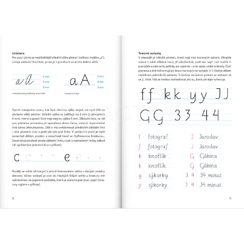 Příručka k praktickému nácviku psacího písma Comenia Script, jejímž základním principem je jednoduchost a čitelnost