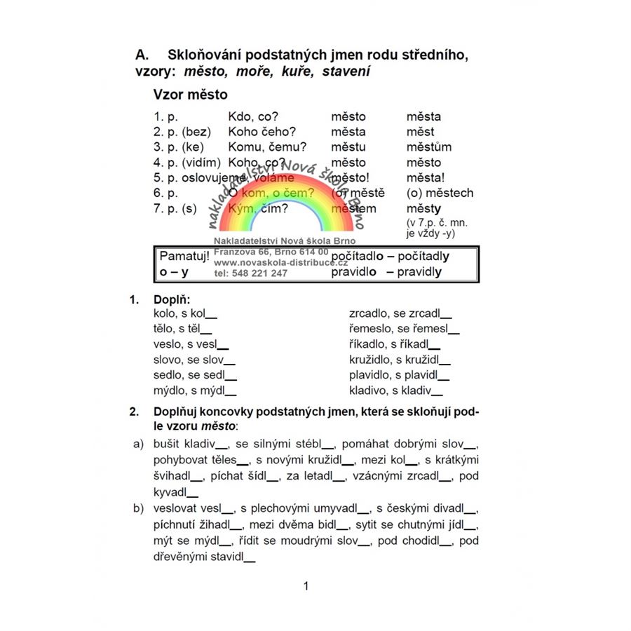 Pravopis podstatných jmen rodu středního a ženského - pracovní sešit