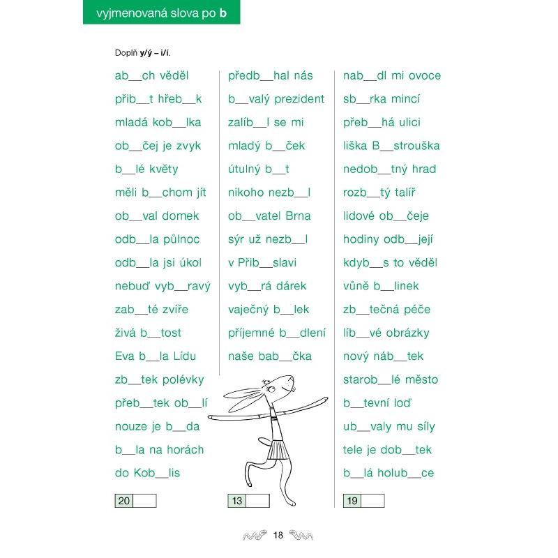 Pracovní sešit slouží k efektivnímu procvičování pravopisných jevů probíraných ve 3. ročníku. Obsahuje sloupce slovních spojení a vět, do nichž žáci doplňují náležitá písmena. Obsahem sešitu jsou párové souhlásky uvnitř slov, vyjmenovaná a s nimi příbuzná slova,psaní i/í a y/ý v kořeni slov a vlastní jména.Součástí sešitu je Klíč s řešeními.