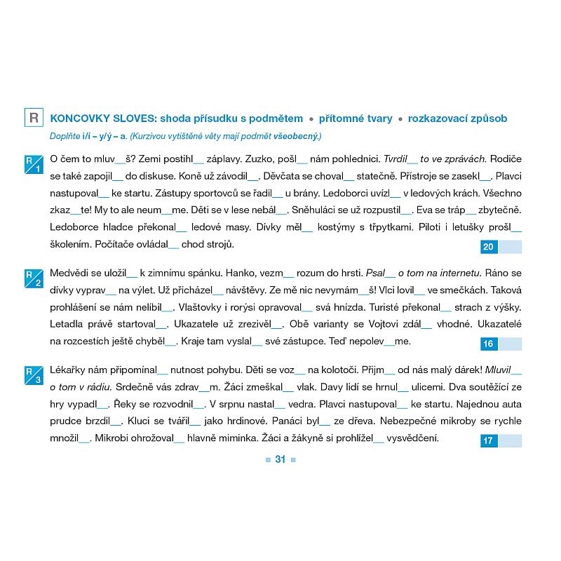 (shoda přísudku s podmětem, přítomné tvary, rozkazovací způsob); stupňování přídavných jmen;