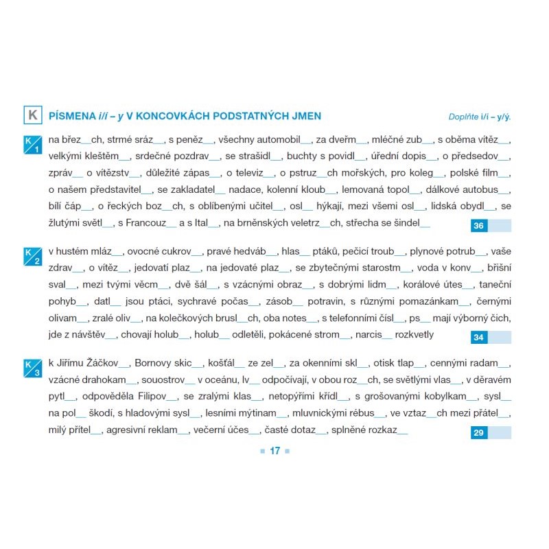zájmena; číslovky; psaní čárky; obsahuje také 6 textů pro korekturu. Titul je opatřen tištěným klíčem.