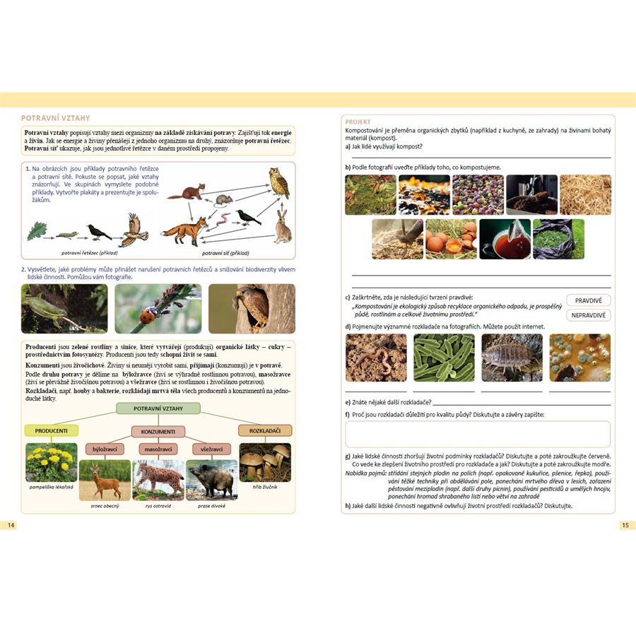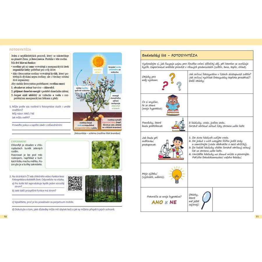 Pracovní učebnice zahrnuje mnoho badatelských aktivit, včetně badatelských listů určených k vyplnění nebo okopírování, které žáky motivují k vlastnímu objevování.
