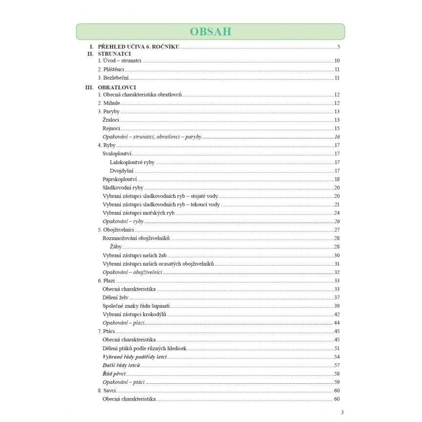Je vytvořena v souladu s moderními výukovými trendy. Důraz se klade na názornost, srozumitelnost, logické souvislosti a mezipředmětové vztahy. Je rozdělena na dva hlavní tematické celky – zoologii a botaniku. Pozornost zoologické části je zaměřena na obratlovce. Kapitoly věnované obratlovcům mají jednotnou a přehlednou strukturu. Tvoří ji obecná charakteristika a stavba těla daného zástupce doplněná obrázkem s popisky. Následuje celkový přehled zástupců většinou v podobě schématu s fotografiemi. Botanická část učebnice je věnována výtrusným a semenným rostlinám. Na základě tohoto dělení se žáci naučí rozlišovat znaky a stavbu těla zejména nahosemenných a krytosemenných rostlin. Součástí každé kapitoly jsou otázky ověřující pochopení probraného učiva, skupinové úkoly, praktické úkoly a pozorování, ekologická témata a přehledné shrnutí obsahu kapitoly.