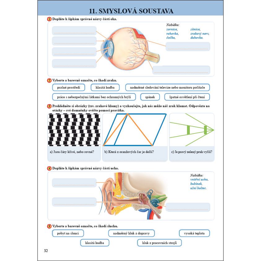 Učivo je dále doplněno otázkami, úkoly a pokusy, které motivují i k práci ve skupinách. Text zahrnuje také úkoly s přesahem do jiných předmětů (český jazyk, tělesná výchova apod.) a průřezová témata. Na konci každé kapitoly je shrnutí a opakovací otázky. V učebnici rovněž najdete pět tematických opakování (vždy na konci kapitoly) a závěrečné opakování.