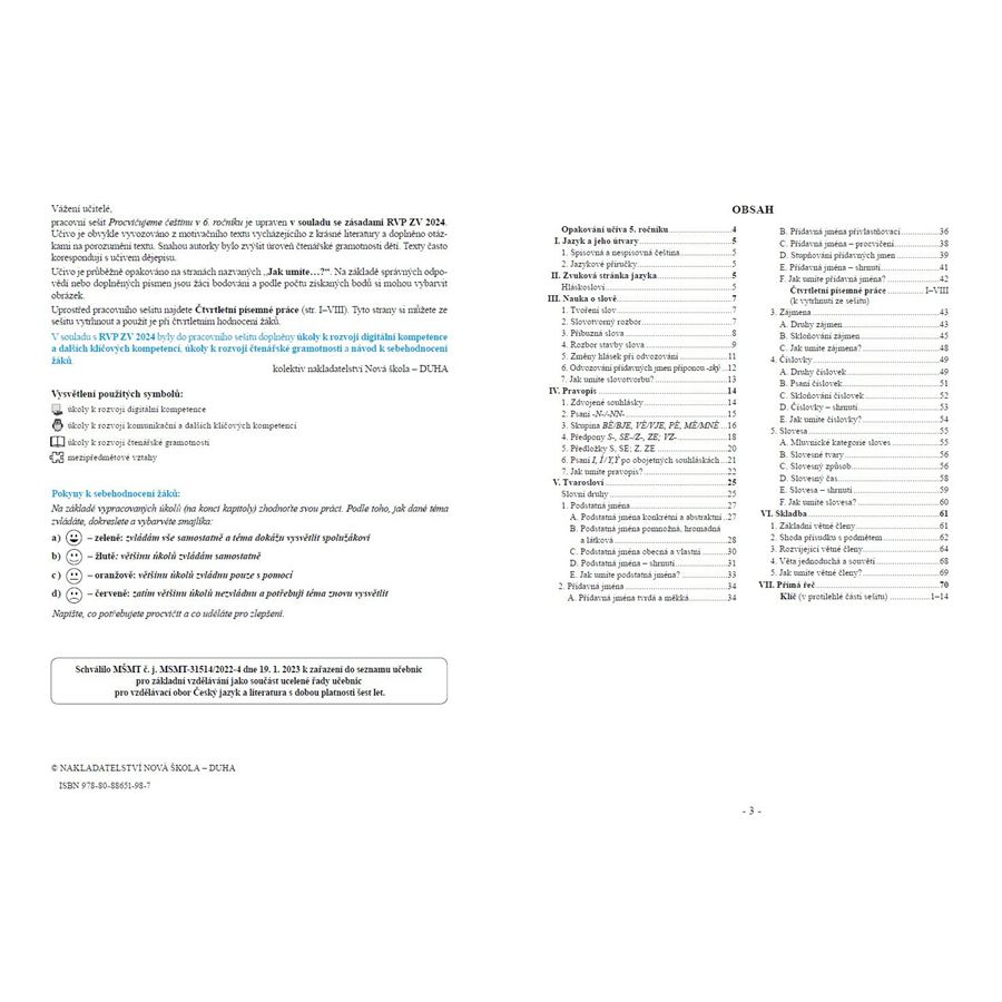 Pracovní sešit Procvičujeme češtinu v 6. ročníku je upraven v souladu se zásadami RVP ZV 2024.