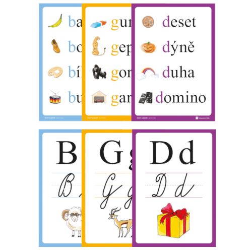Tradiční pomocník učitelů, který pomáhá dětem spojit si jednotlivá písmena abecedy s psanou a zvukovou formou.