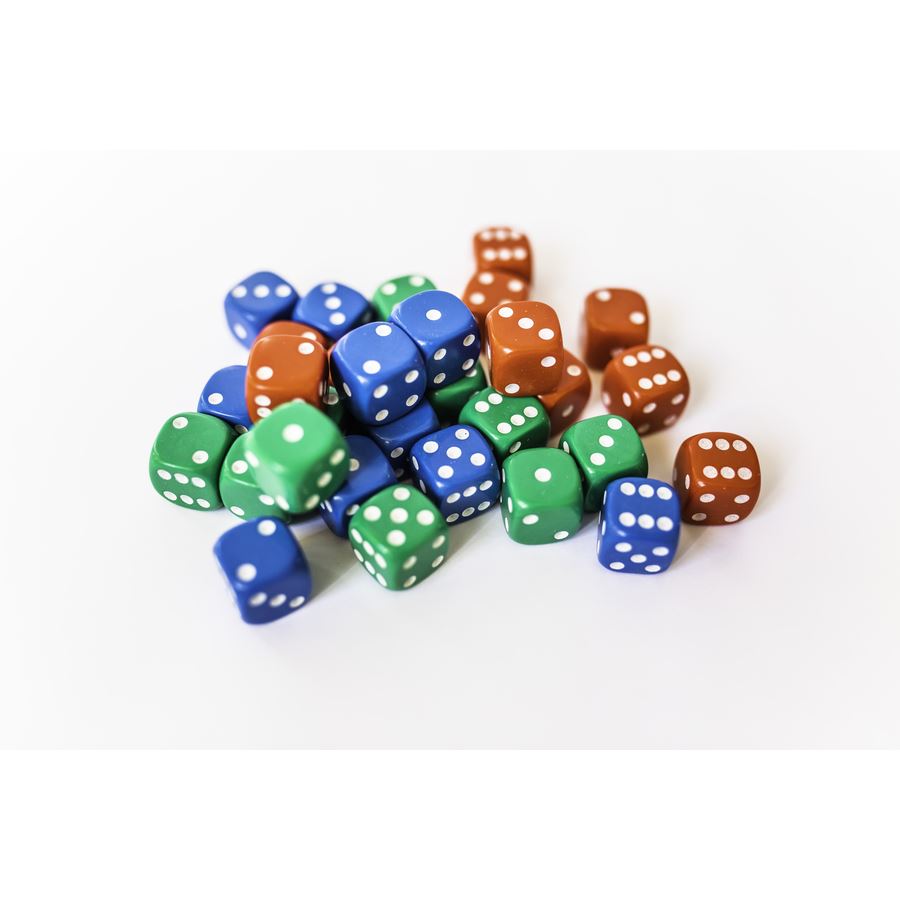 SADA HRACÍCH KOSTEK pro žáky do lavice - hrací (házecí) kostky pro žáky do lavice ve třech barvách s bílými puntíky a dostatečnou velikostí pro snadnou manipulaci. Kostky mají zaoblené rohy, aby se snadno kutálely a byl zaručen prvek náhody.