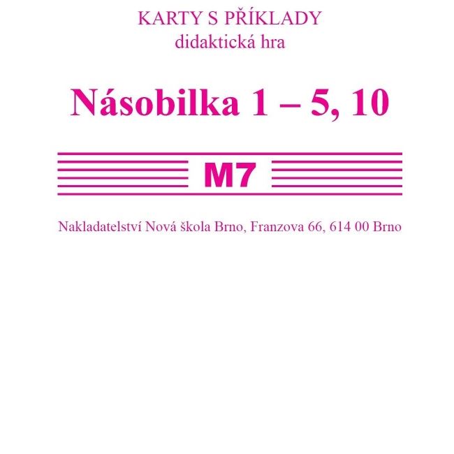 Násobilka 1-5,10. Karty s příklady - didaktická pomůcka, slouží k procvičování početních výkonů ve vyučování, na pomoc škole hrou. Umožňují velmi dobré procvičování pamětného počítání. Vedou žáky k soustředění a pozornosti. Pomáhají k zautomatizování početních spojů. Jsou vhodné pro skupinovou práci, činnost ve dvojicích i k individuálnímu procvičení učiva. Soubor obsahuje příklady a jejich výsledky spolu s návodem k možnému využití karet při hře.