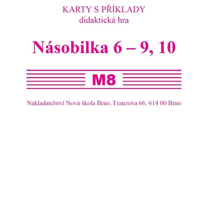 Násobilka 6-9,10. Karty s příklady - didaktická pomůcka, slouží k procvičování početních výkonů ve vyučování, na pomoc škole hrou. Umožňují velmi dobré procvičování pamětného počítání. Vedou žáky k soustředění a pozornosti. Pomáhají k zautomatizování početních spojů. Jsou vhodné pro skupinovou práci, činnost ve dvojicích i k individuálnímu procvičení učiva. Soubor obsahuje příklady a jejich výsledky spolu s návodem k možnému využití karet při hře.